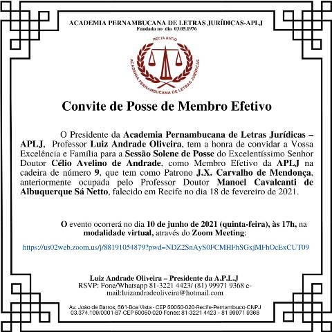 Posse na APLJ (na modalidade virtual) do Dr.Celio Avelino de Andrade.