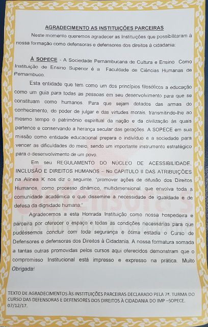 Formatura da 7ª Turma das Defensoras e Defensores dos Direitos