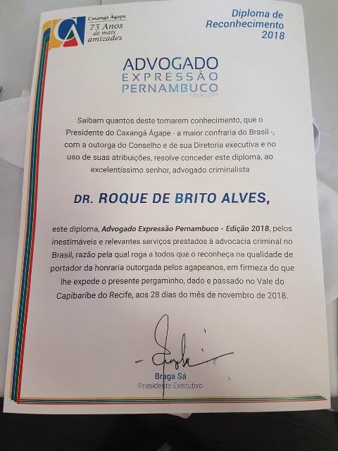 Criminalistas homenageados: Dr. Roque de Brito Alves,